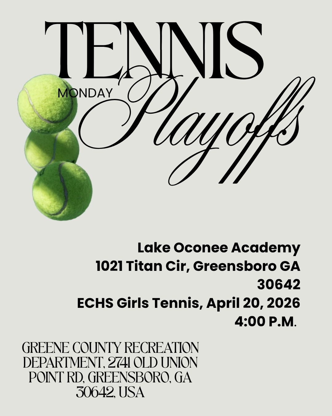 The Lady Cats Tennis team will be traveling to Greensboro for 1st round state play.The school's website stated that play was at the Greene County Recreation DepartmentThe match will begin at 4:00...